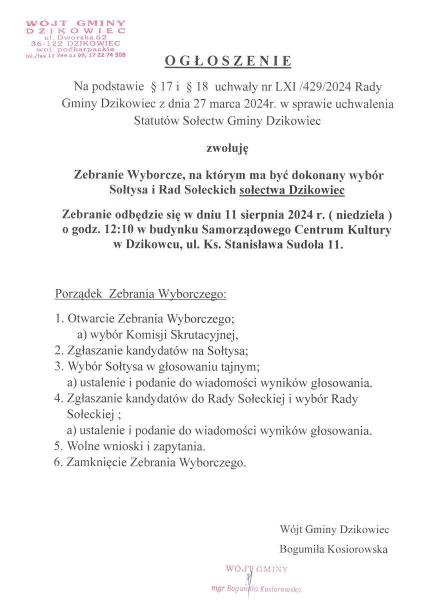 Zebranie Wyborcze Sołectwa Dzikowiec