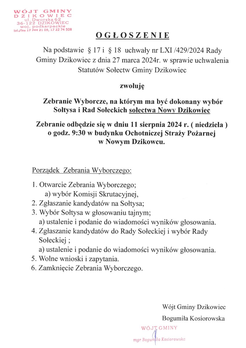 Zebranie Wyborcze Sołectwa Nowy Dzikowiec