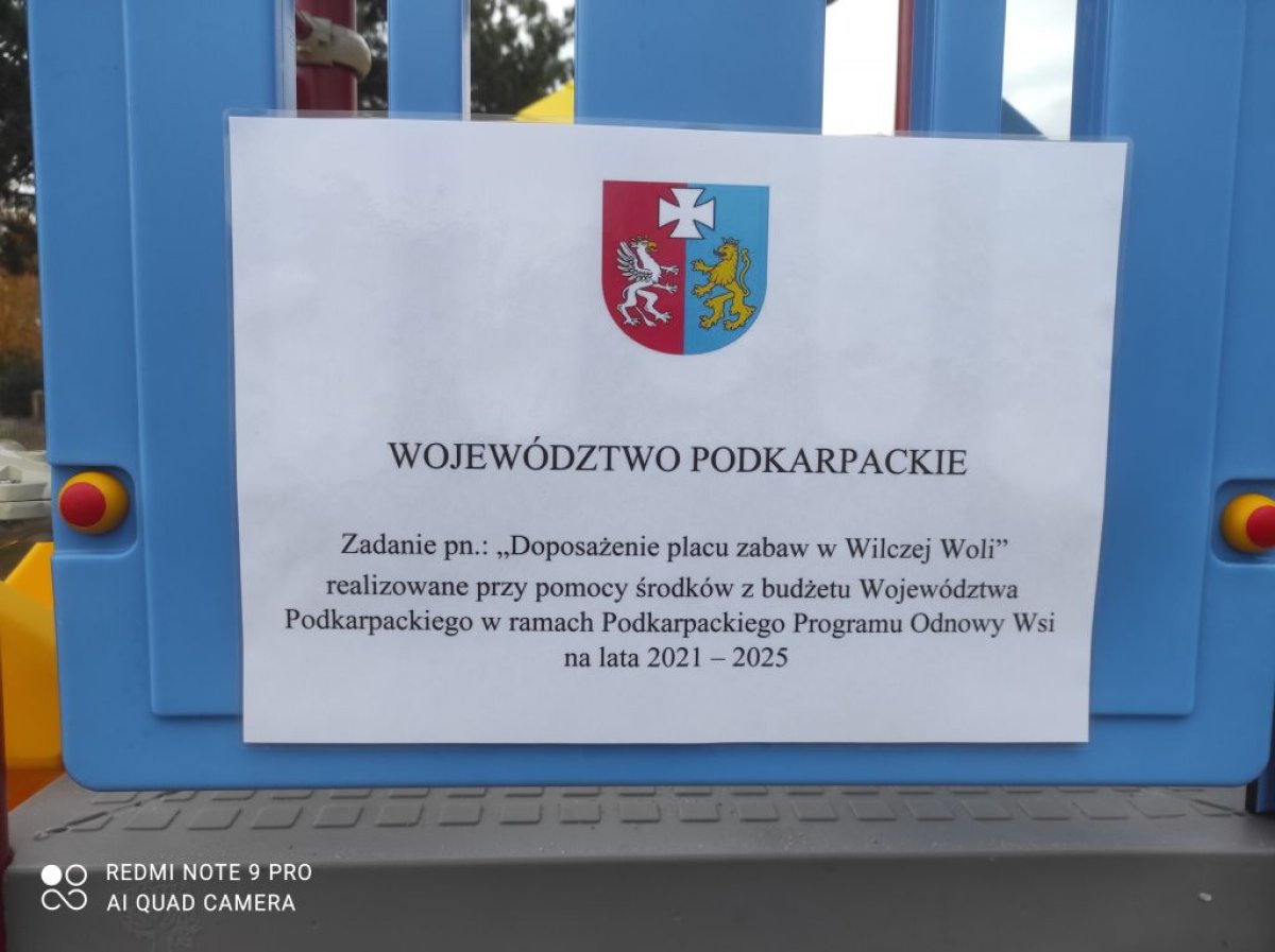 Gmina Dzikowiec zrelizowała zadanie pn.: "Doposażenie placu zabaw w Wilczej Woli", które wspólfinansowane jest z budżetu Województwa Podkarapckiego w ramach Podkarpackiego Programu Odnowy Wsi na lata 2021-2025. Celem przedsięwzięcia było poprawienie warunków infrastruktury rekreacyjnej dla lokalnej społeczności co pozwoli na integrację i aktywizację miejscowości Wilcza Wola.