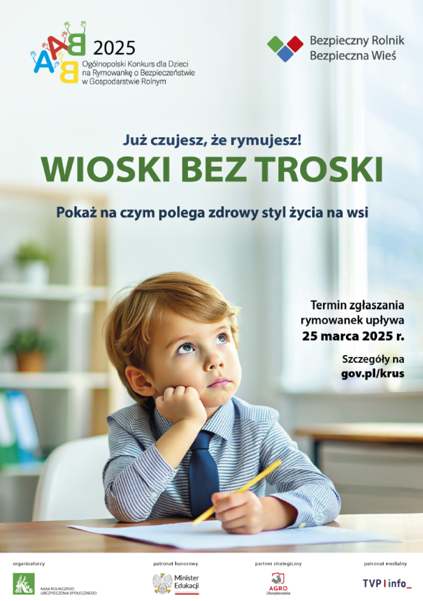 Regulamin konkursu oraz szczegółowe informacje dostępne są pod adresem: VI Konkurs na Rymowankę - Kasa Rolniczego Ubezpieczenia Społecznego - Portal Gov.pl