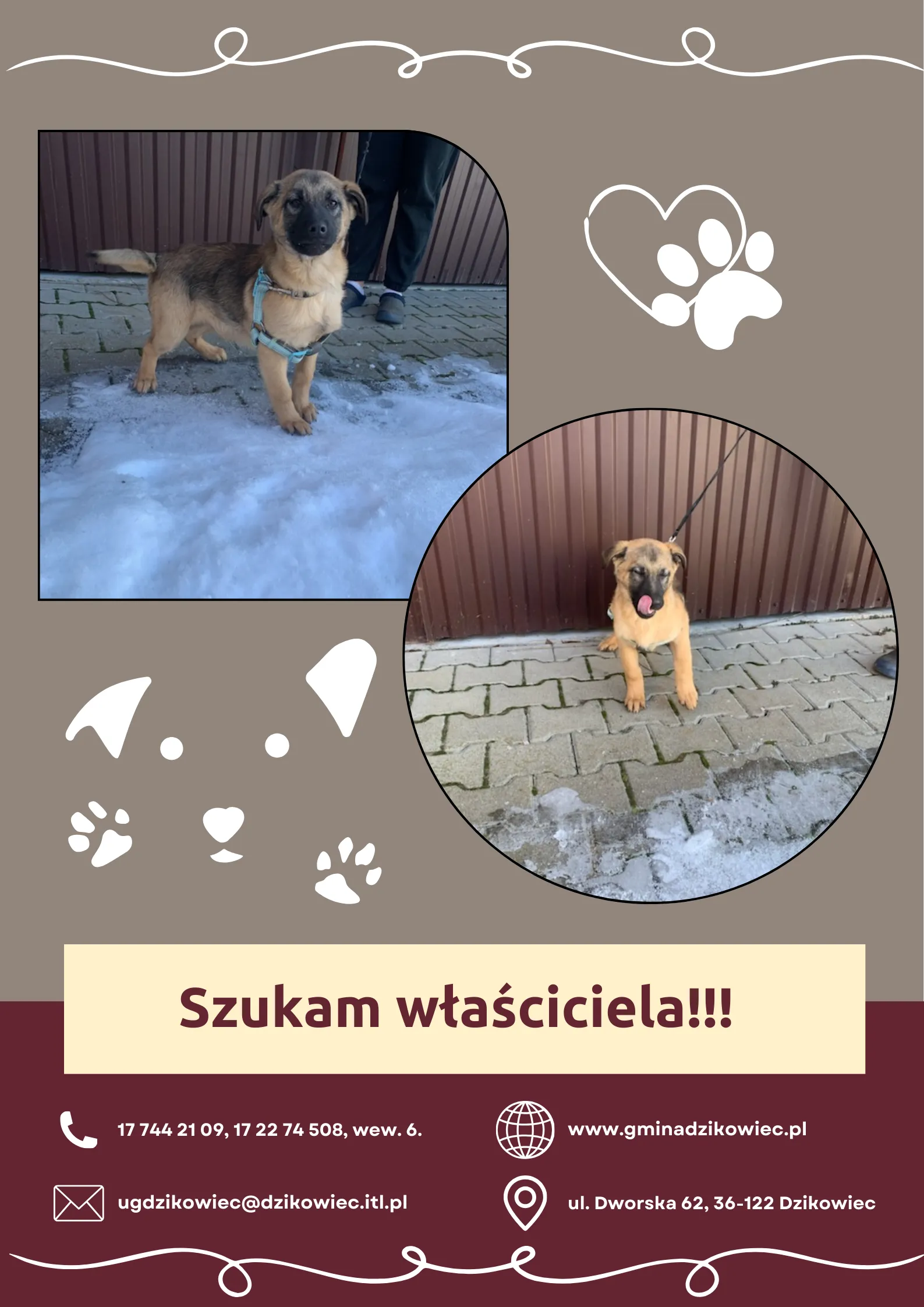 Jeśli szukasz psa, lub znasz kogoś, kto planuje adopcję czworonoga, prosimy o kontakt z Urzędem Gminy: